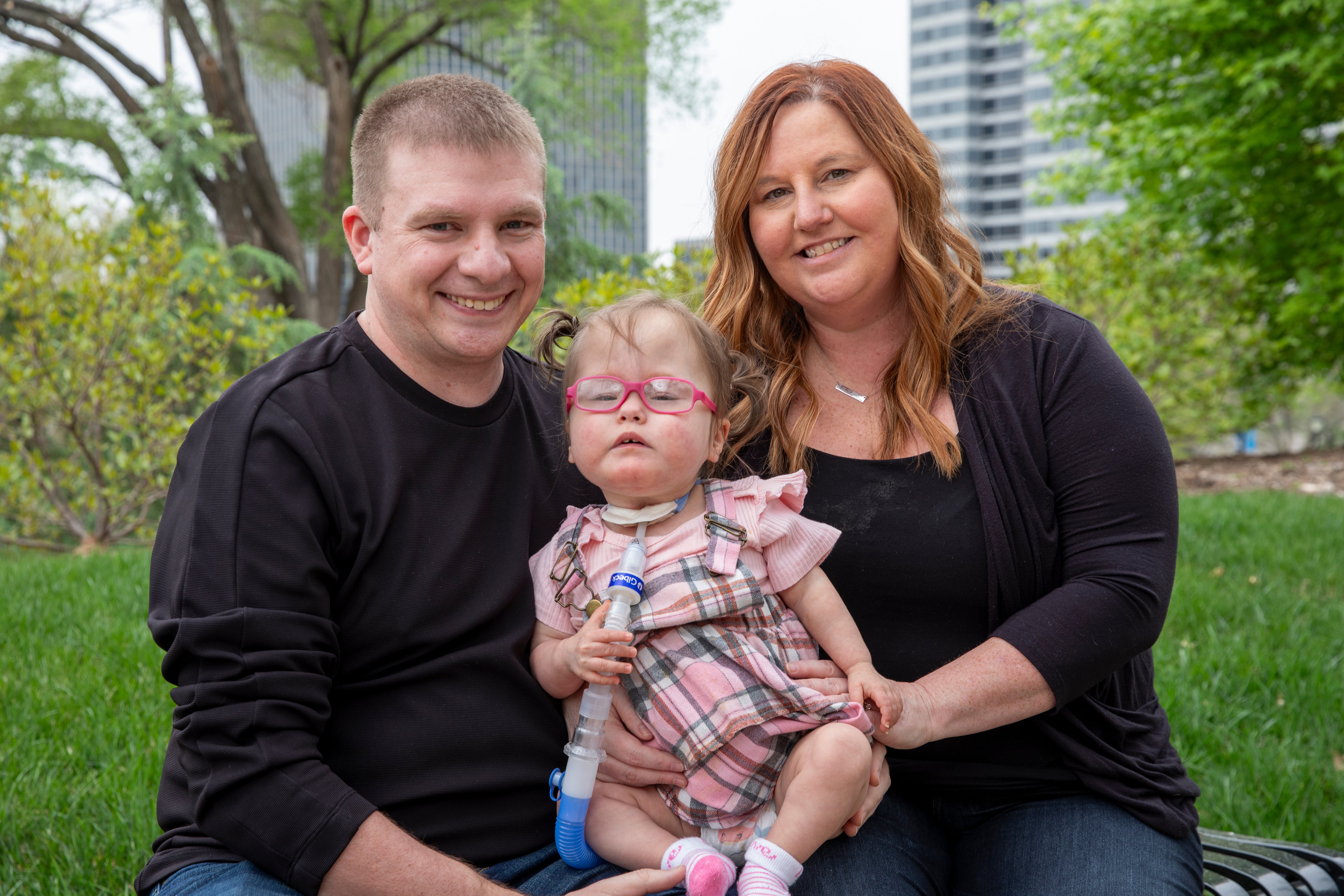 In addition to the NEC, Hazel was also dealing with BPD, a debilitating chronic lung disease for which she eventually needed a tracheostomy. All of Hazel’s challenges made interactions with their new daughter extremely limited as she required a breathing tube during the first eight months of her life, Nikki said. Nikki and her husband, Cory, had to sit very still, with the lines and wires taped carefully to their shoulders when holding her, so as not to disrupt anything, she said.