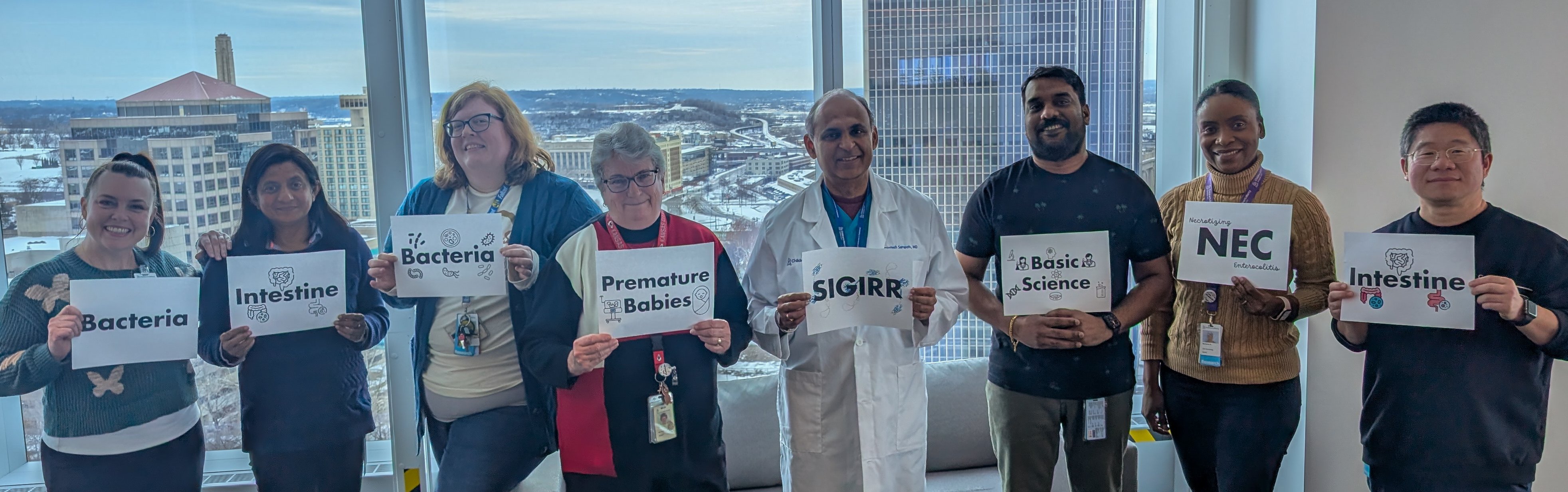 The second grant — a $2.5 million grant from the National Institute of Diabetes and Digestive and Kidney Diseases, announced in February 2025 — is to study necrotizing enterocolitis (NEC), a devastating gastrointestinal disease with up to 20% mortality. Specifically, Dr. Sampath is studying the single immunoglobulin interleukin-1 related receptor (SIGIRR) gene, which regulates inflammation in the intestine. Because premature infants lack a developed intestinal mucosal barrier, they’re at a higher risk of developing NEC.