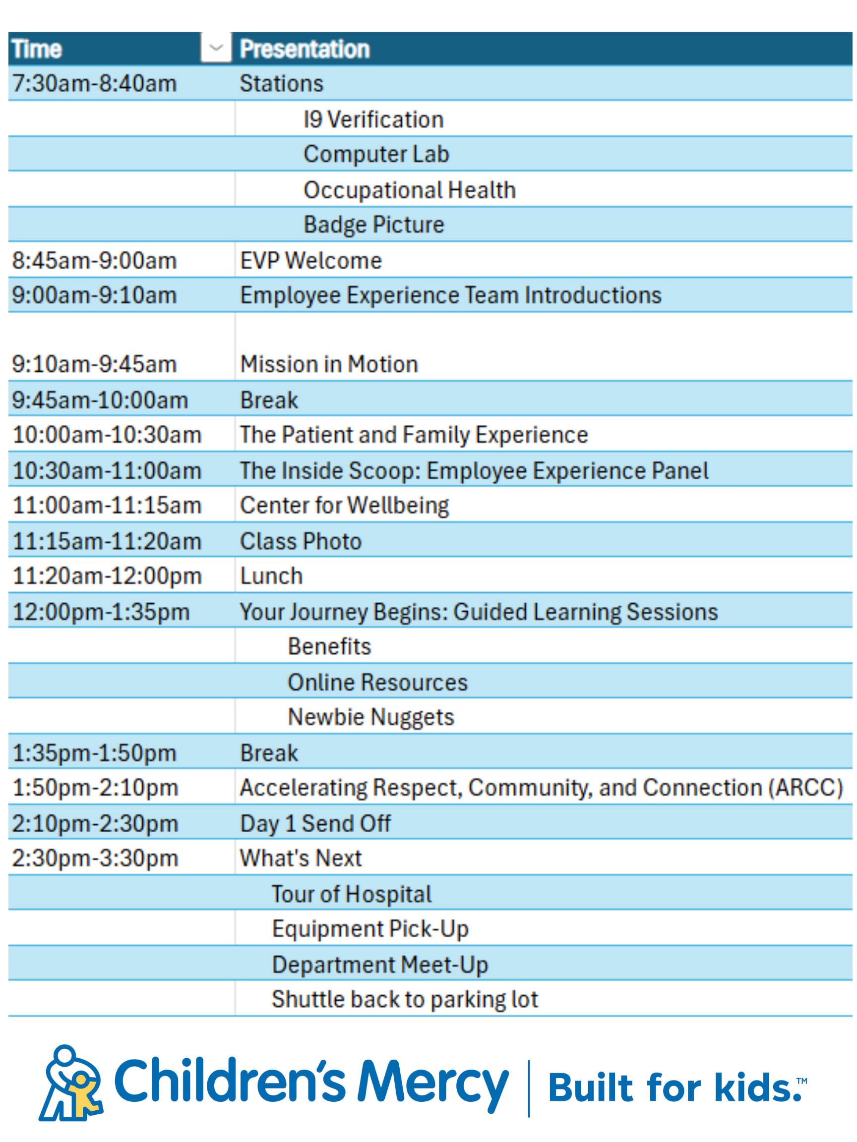 On your first day, you’ll be immersed into the Children’s Mercy culture and have a chance to connect with other new hires and Children’s Mercy contacts. We have a strong culture that values and actively promotes competency in kindness, curiosity, inclusion, team and integrity.