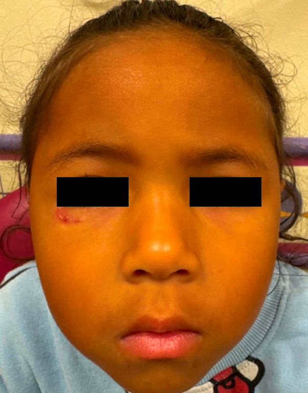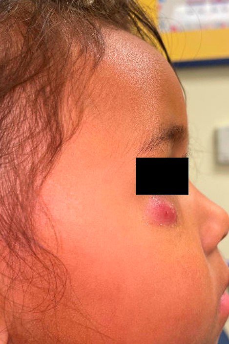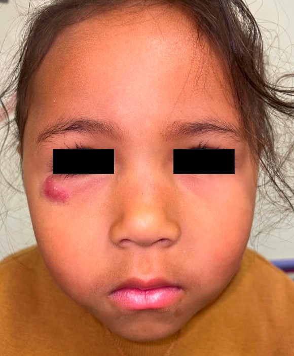 A 3-year-old girl presented with a solitary lesion below her right eye that had been present for approximately three months.