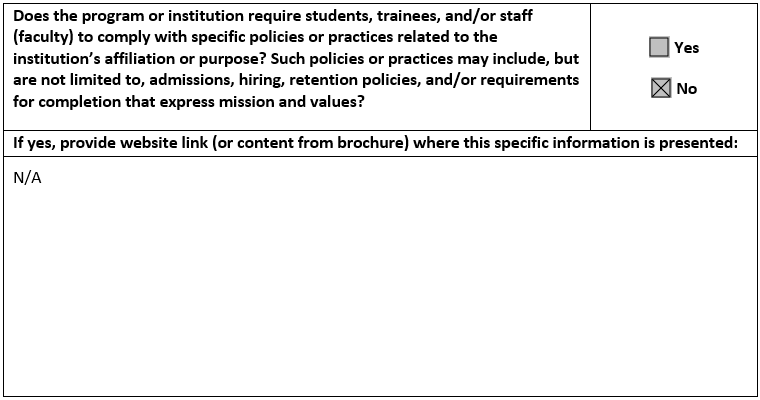 Note: Programs are not required by the Commission on Accreditation to provide all benefits listed in this table