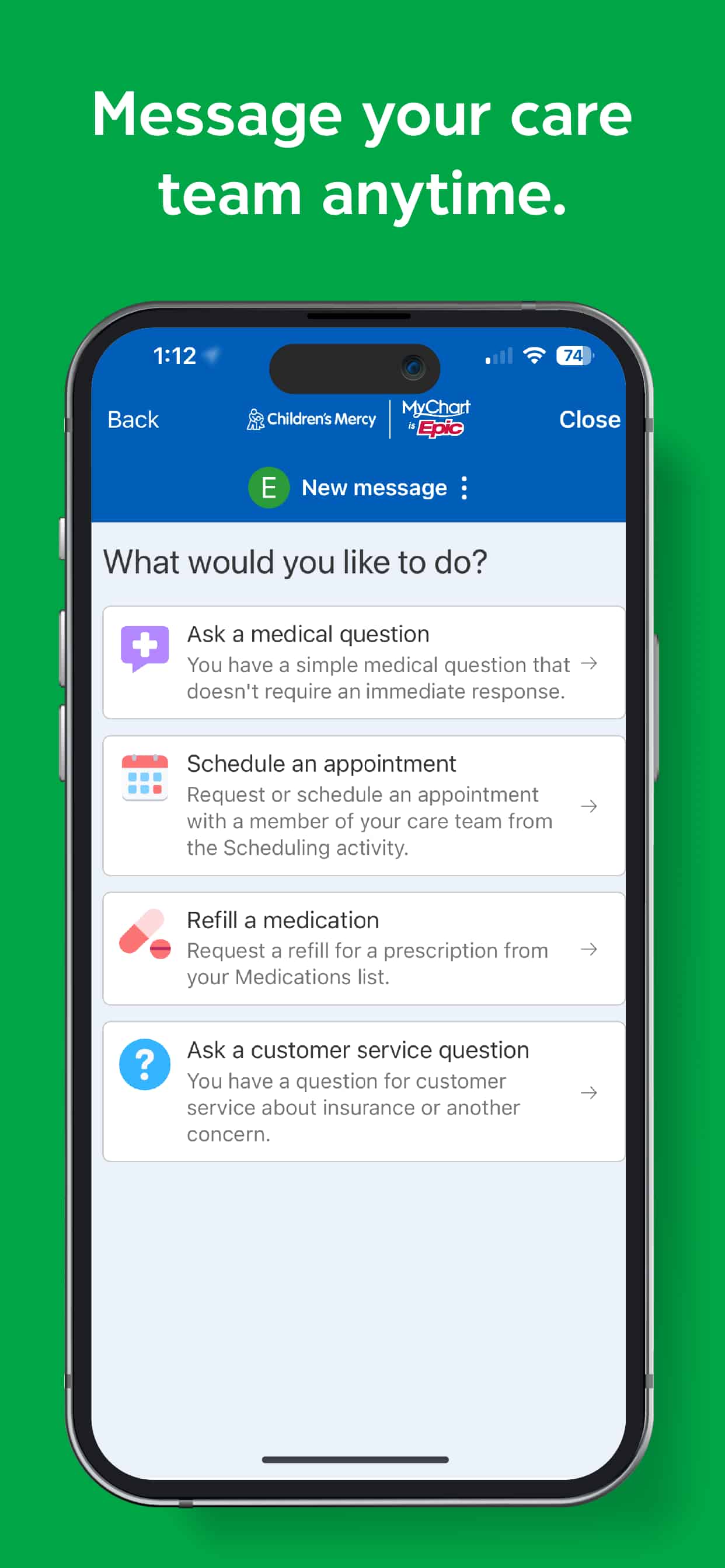Our care teams use MyChart to stay connected with families and streamline your health care to-dos. Use MyChart in the Children’s Mercy App to message your care team, access health records, manage appointments, get test results, fill prescriptions and more.